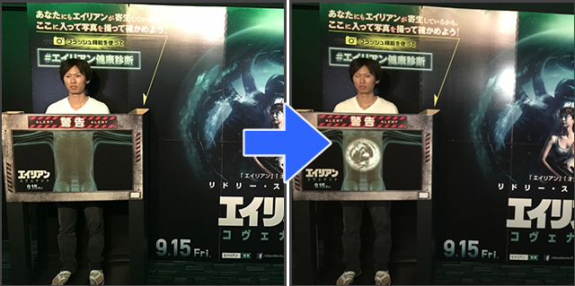 映画新作の告知を兼ねたフォトスポットで、フラッシュ撮影すると「レントゲンが写る」追体験を楽しめる仕掛けをフラッシュプリントで実現。話題性を高め、自然にUGCも生まれ拡散効果につながりました。
