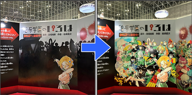 マンガ作品の認知、ブランディングを兼ねたフォトスポットで「キャラクターが現れる」ユニークな体験を楽しめる仕掛けをフラッシュプリントで実現。ファンのエンゲージメントや話題性を高めました。