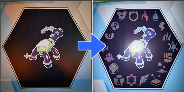 スマートフォンでフラッシュ撮影することで、見えているデザインと異なるデザインが写る印刷技術です。