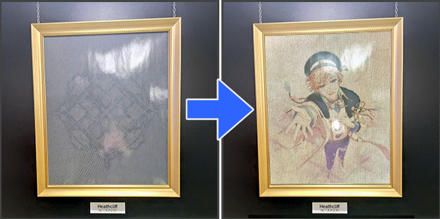 スマートフォンでフラッシュ撮影することで、見えているデザインと異なるデザインが写る印刷技術です。