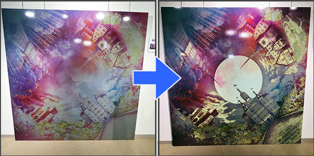 スマートフォンでフラッシュ撮影することで、見えているデザインと異なるデザインが写る印刷技術です。