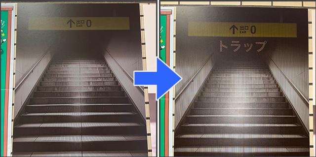 スマートフォンでフラッシュ撮影することで、見えているデザインと異なるデザインが写る印刷技術です。