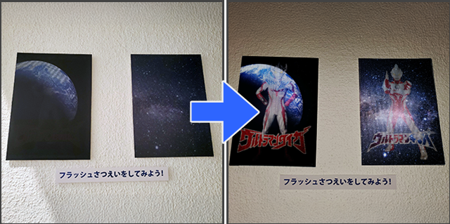 コラボイベントのクイズラリーで、各チェックポイントに設置されたポスターをフラッシュ撮影すると「ヒーローが現れる」ユニークな演出が楽しめる仕掛けをフラッシュプリントで実現。イベントを盛り上げ、訪れたファンのエンゲージメントを高めました。