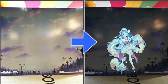 バーチャルシンガーとコラボしたアミューズメント施設のフォトスポットで、フラッシュ撮影すると「キャラクターが現れる」ユニークな体験が楽しめる仕掛けをフラッシュプリントで実現。イベントを盛り上げ、訪れたファンのエンゲージメントを高めました。