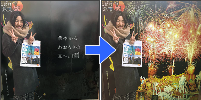 観光PR用のフォトスポットで、地元にちなんだユニークな体験が楽しめる仕掛けをフラッシュプリントで実現し、ブースに訪れた来場者のエンゲージメントや話題性を高めました。