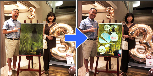 ホテルのSNS投稿キャンペーン用のフォトスポットパネルで、宿泊先にちなんだユニークな体験が楽しめる仕掛けをフラッシュプリントで実現し話題性を高めました。